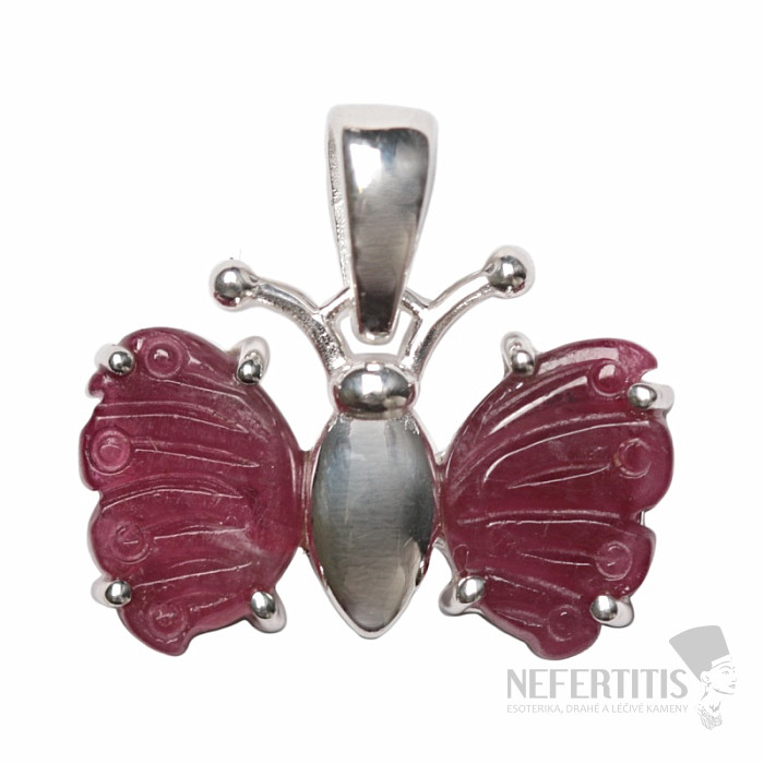 Strieborný prívesok s farebným turmalínom brúseným a lešteným do tvaru motýľa. Ag 925. . Kupujete priamo vyobrazený šperk.