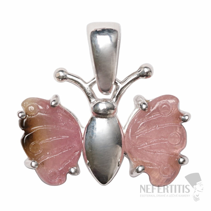 Strieborný prívesok s farebným turmalínom brúseným a lešteným do tvaru motýľa. Ag 925. . Kupujete priamo vyobrazený šperk.
