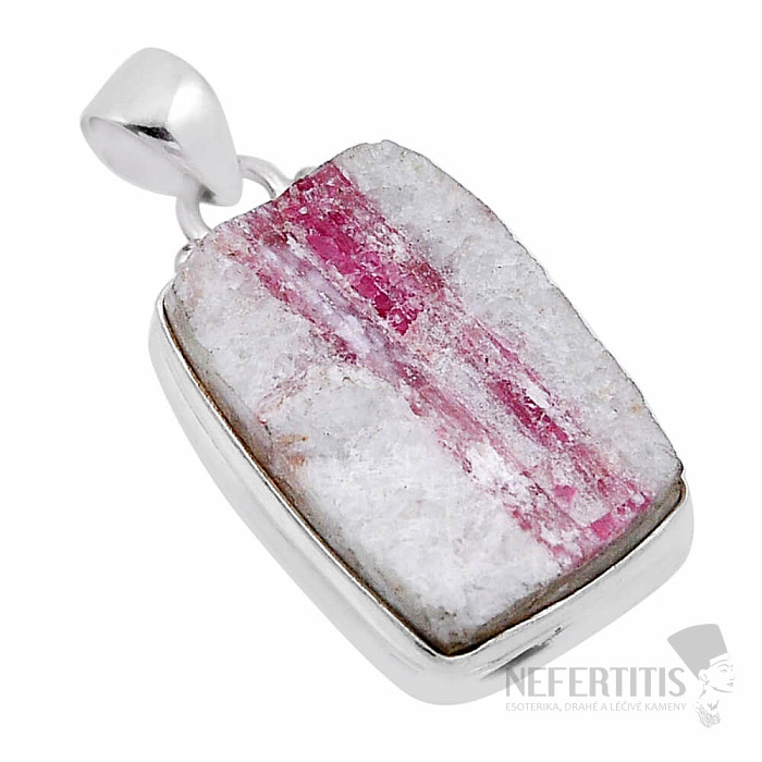Turmalín rubelit v krištáli surový prívesok striebro Ag 925 51545