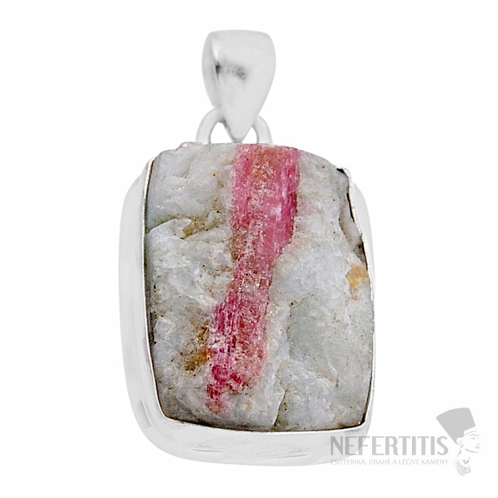 Unikátny prívesok z ružového turmalínu rubelitu s kremeňom a brúseného ametystu v striebre . Očarujúce šperk, v ktorom sa jemná ružová farba turmalínu rubelitu nežne snúbi so smotanovo bielou farbou kremeňa, ktorý dáva vyniknúť ružovej kráse turmalínu. Ag 925. Kupujete priamo vyobrazený šperk.