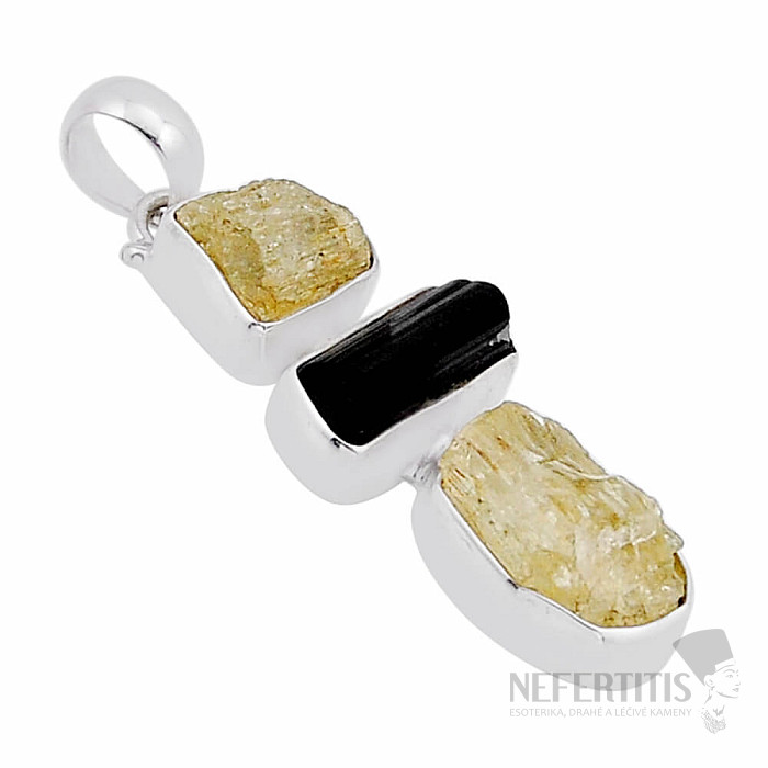 Turmalín skoryl a skapolit prívesok striebro Ag 925 54101