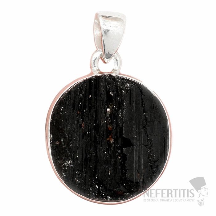 Atraktívny, elegantný, až trochu tajomný prívesok z veľkého surového čierneho turmalínu skorylu v striebre. Čierna farba turmalínu, ktorá krásne kontrastuje s leskom strieborného rámčeka, dáva tomuto prívesku eleganciu a robí z neho veľmi dekoratívny šperk. Čierne surové turmalíny bežne obsahujú prasklinky, je to ich charakteristický rys a dôkaz, že kupujete pravý prírodný tumalín. Ag 925. Kupujete priamo vyobrazený šperk.