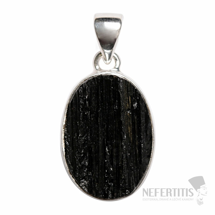 Atraktívny, elegantný, až trochu tajomný prívesok z veľkého surového čierneho turmalínu skorylu v striebre. Čierna farba turmalínu, ktorá krásne kontrastuje s leskom strieborného rámčeka, dáva tomuto prívesku eleganciu a robí z neho veľmi dekoratívny šperk. Čierne surové turmalíny bežne obsahujú prasklinky, je to ich charakteristický rys a dôkaz, že kupujete pravý prírodný tumalín. Ag 925. Kupujete priamo vyobrazený šperk.