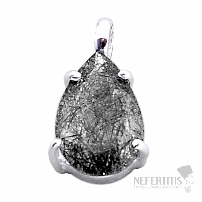 Unikátny strieborný prívesok z krištáľu s čiernym turmalínom, ktorý potláča stres, zlosť, strach a negativitu. Ag 925. Kupujete priamo vyobrazený šperk.