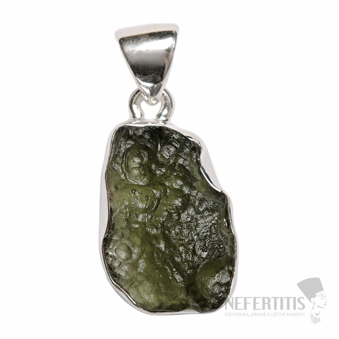 Strieborný prívesok s vltavínom. Ag 925. Vltavín je považovaný za talizman šťastia. Kupujete priamo vyobrazený šperk.