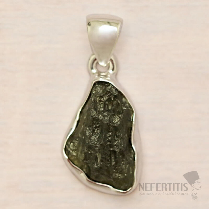 Strieborný prívesok s vltavínom. Ag 925. Vltavín je považovaný za talizman šťastia. Kupujete priamo vyobrazený šperk.