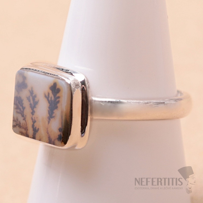 Výnimočný a nadherne "vykreslený" prsteň zo vzácneho dendritického scénického achátu v striebre. Ag 925. Veľkosť kameňa cca 1,1x1,3 cm. Kupujete priamo vyobrazený šperk.
