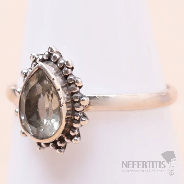 Unikátny prsteň s brúseným zeleným ametystom - prasiolitom. Nechajte sa očariť jemnou a predovšetkým neobvyklou zelenou farbou ametystu. Unikátny šperk vďaka nezvyklej farbe ametystu. Zelený ametyst sa ako taký v prírode nenachádza, obdobne ako väčšina citrínov na trhu, vzniká úpravou ametystových kryštálov. Prvýkrát bol tento kameň uvedený na trh v Amerike okolo roku 1950, kedy dostal názov prasiolit, ktorý je spojením gréckych slov pre pažítkovo zelenú a kameň. Zelené ametysty pochádzajú väčšinou z Brazílie , zo známych ametystových lokalít ako Minas Gerais a Rio Grande do Sul. Veľkosť kameňa cca 0,8 cm. Ag 925. Kupujete priamo vyobrazený šperk.