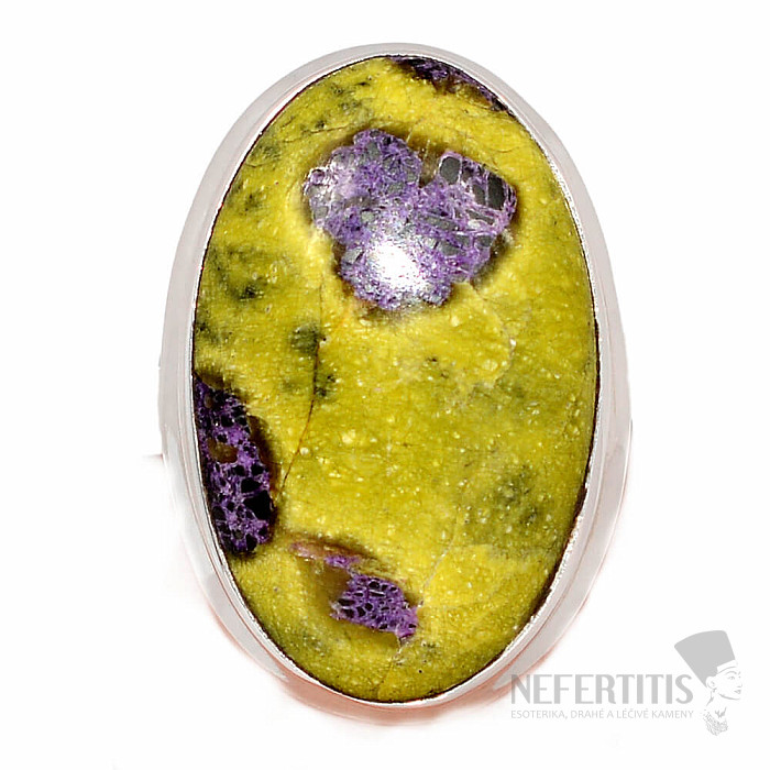 Strieborný prsteň so vzácnym Atlantisitom. Atlantisit, zvaný tiež stichtit, je vzácny kameň, ktorý sa ťaží v jedinej bani na svete. Ponuka tohto kameňa na trhu je značne obmedzená. Pôvab a krása jeho sýto fialovej farby v zelenom kameni vás očarí na prvý pohľad. Ag 925. Veľkosť kameňa cca 2,1 cm spoločne s nevšednou a výraznou farebnou kombináciou farieb robí šperk výnimočným a neprehliadnuteľným. Kupujete priamo vyobrazený šperk.