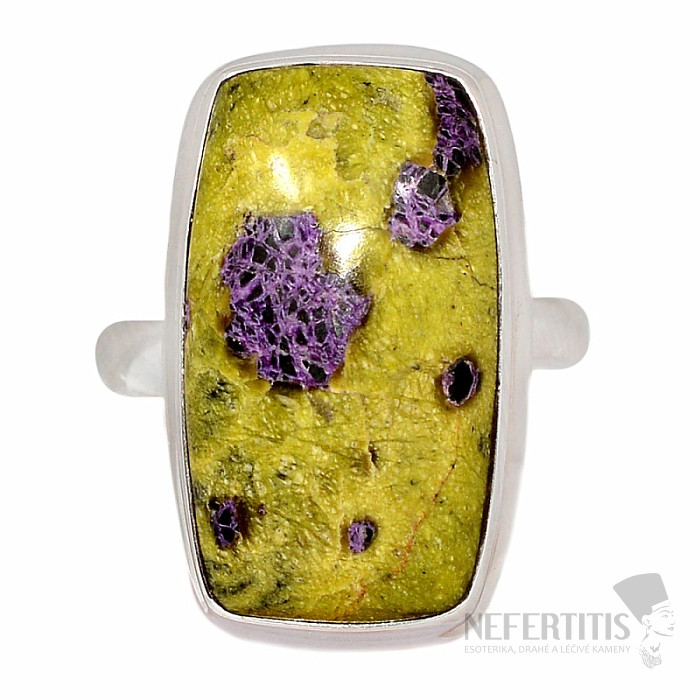 Strieborný prsteň so vzácnym Atlantisitom. Atlantisit, zvaný tiež stichtit, je vzácny kameň, ktorý sa ťaží v jedinej bani na svete. Ponuka tohto kameňa na trhu je značne obmedzená. Pôvab a krása jeho sýto fialovej farby v zelenom kameni vás očarí na prvý pohľad. Ag 925. Veľkosť kameňa cca 2 cm spoločne s nevšednou a výraznou farebnou kombináciou farieb robí šperk výnimočným a neprehliadnuteľným. Kupujete priamo vyobrazený šperk.