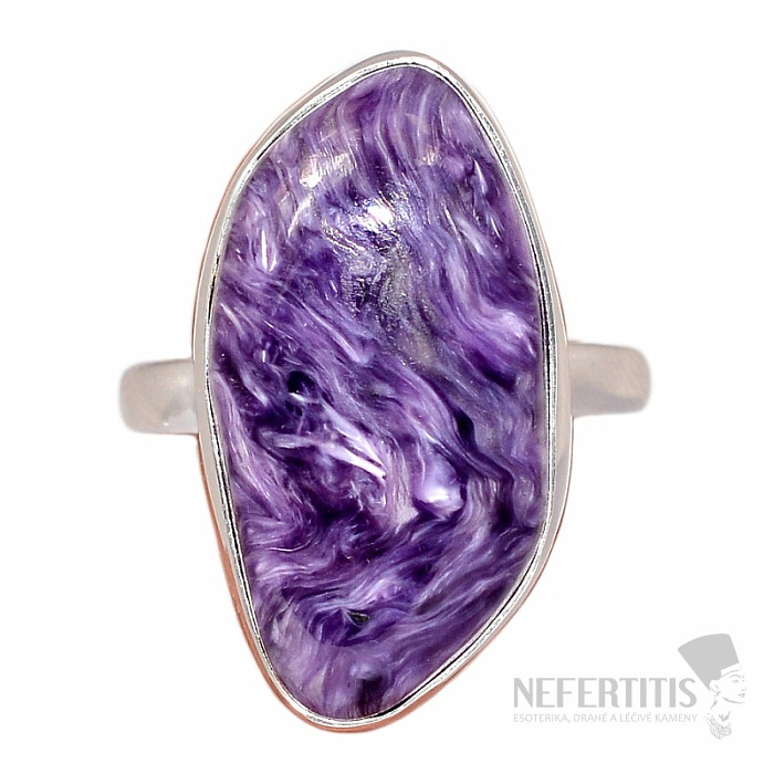Strieborný prsteň s čaroitom. Nádherne fialovo sfarbený čaroit vás očarí nielen svojim hodvábnym leskom, ale aj premenou kresby v meniacom sa svetle. Ag 925. Veľkosť kameňa cca 2,5 cm. Kupujete priamo vyobrazený šperk.