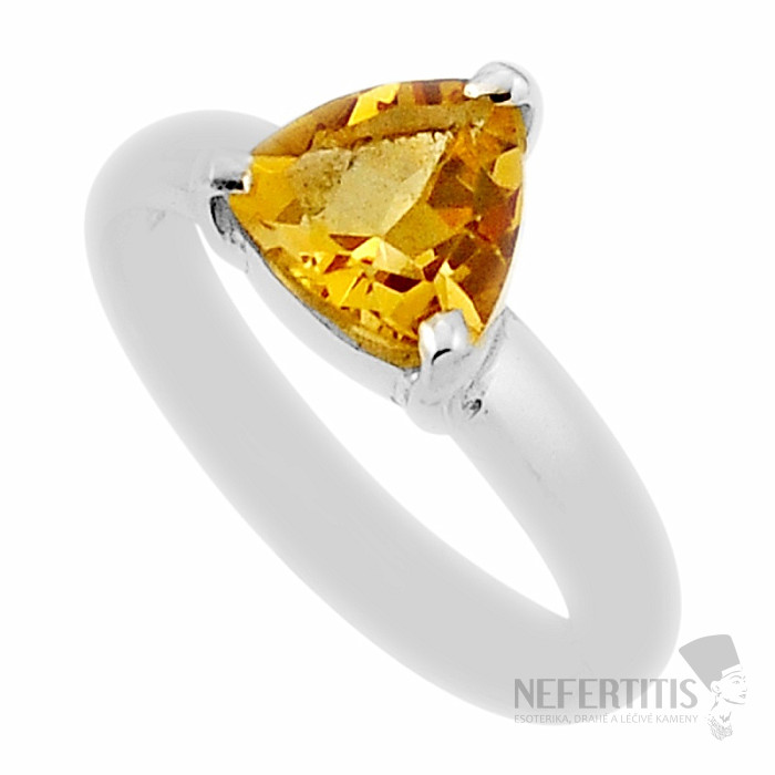Moderný a elegantne prevedený, napriek tomu neprehliadnuteľný, strieborný prsteň s brúseným citrínom. Prstienok je osadený brúseným citrínom, ktorý mu dávajú diamantovo iskrivý vzhľad. Ag 925. Veľkosť kameňa cca 0,8 cm. Kupujete priamo vyobrazený šperk.
