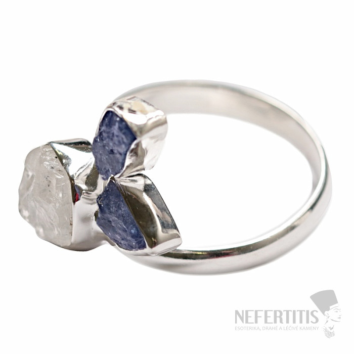 Strieborný dizajnový prsteň so surovým mesačným kameňom a tanzanity . Ag 925. Tento prsteň je obzvlášť krásny nielen svojim tvarom, ale predovšetkým svojim spracovaním. Veľkosť časti s kameňmi cca 2,3 cm . Kupujete… viac »