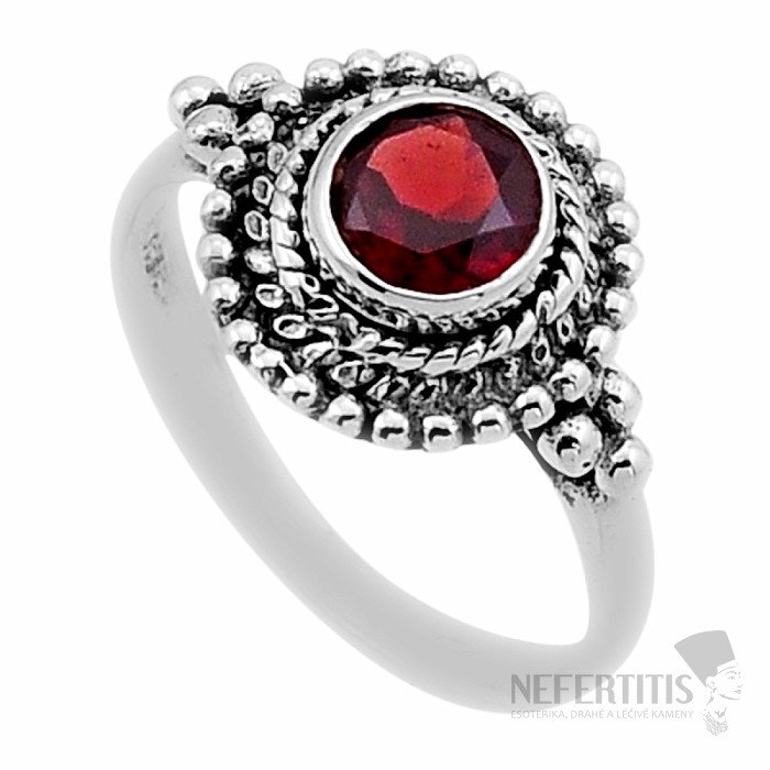 Strieborný prsteň s brúseným granátom. Ag 925. Výrazný prsteň, ktorého krásu umocňuje trblietanie svetla na jednotlivých brúsených plôškach. Veľkosť kameňa cca 0,6 cm. Kupujete priamo vyobrazený šperk.