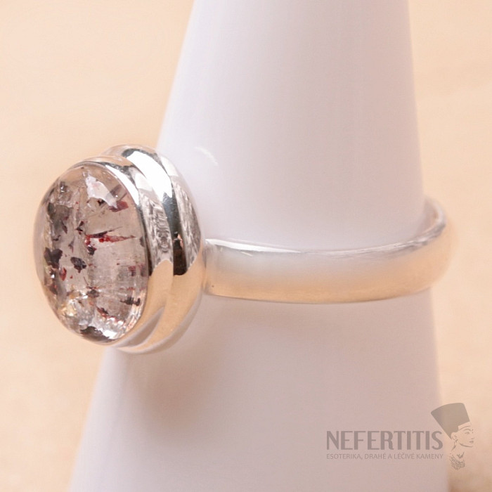 Strieborný prsteň so vzácnym krištáľom z lokality Orire . Tento polodrahokam sa ťaží v lokalite Orire v Nigérii. Orire sa dá voľne preložiť ako "veľa šťastia", a aj preto sa tomuto kameňu prezýva krištáľ šťastia. Ide o vzácnu kombináciu krištáľu s inklúziami hematitu a lepidokrokitu . Ag 925. Veľkosť kameňa cca 1,2 cm. Kupujete priamo vyobrazený šperk.