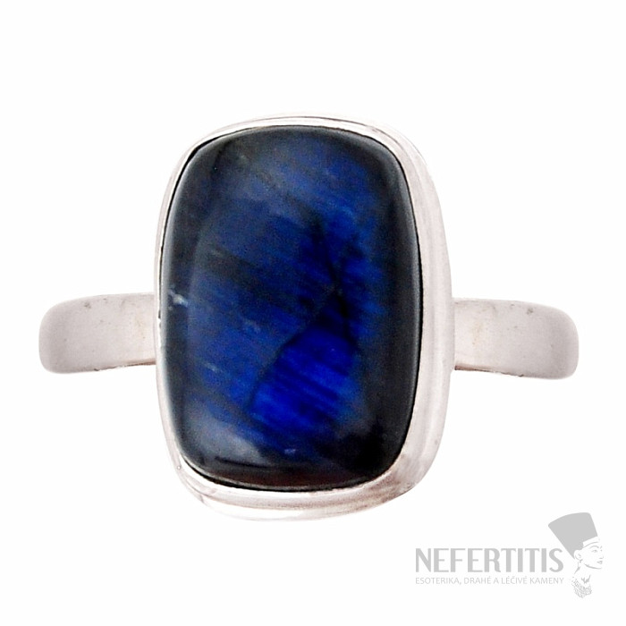 Uchvacujúci a výnimočný strieborný prsteň s prvotriednym lešteným labradoritom s výraznou dúhovou hrou farieb, v ktorom sa pri dopade svetla kúzelne rozžiari jasná modro zlatá farba, zvaný tiež "Multifire". Ag 925. . Nechajte sa očariť krásou a hrou jeho žiarivo modrej farby. Spolu s veľkosťou kameňa cca 1,5 cm , a hrou farieb ide o atraktívny a neprehliadnuteľný šperk. Kupujete priamo vyobrazený šperk.