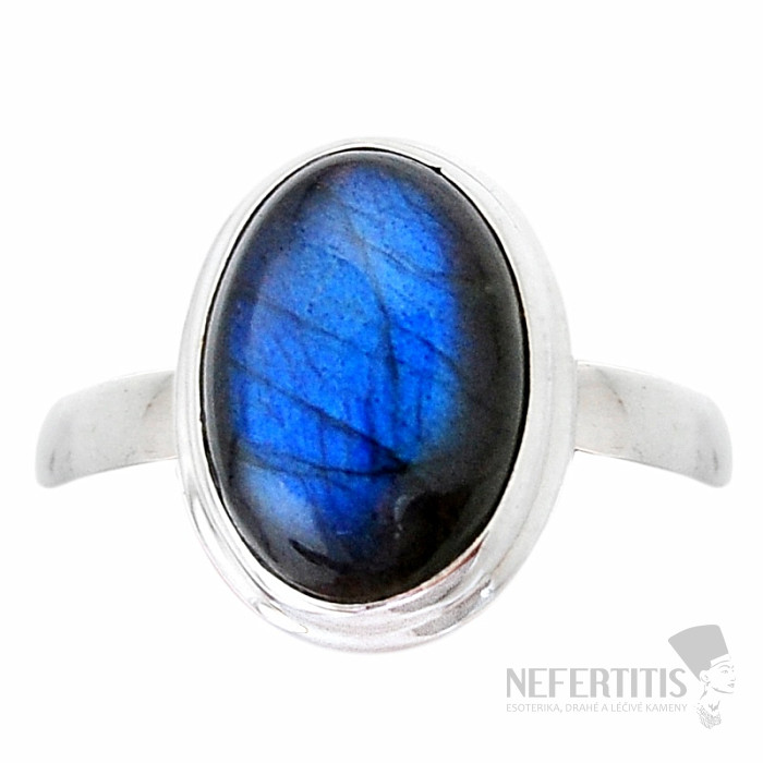 Uchvacujúci a výnimočný strieborný prsteň s prvotriednym lešteným labradoritom s výraznou dúhovou hrou farieb, v ktorom sa pri dopade svetla kúzelne rozžiari jasná modro zlatá farba, zvaný tiež "Multifire". Ag 925. . Nechajte sa očariť krásou a hrou jeho žiarivo modrej farby. Spolu s veľkosťou kameňa cca 1,4 cm , a hrou farieb ide o atraktívny a neprehliadnuteľný šperk. Kupujete priamo vyobrazený šperk.