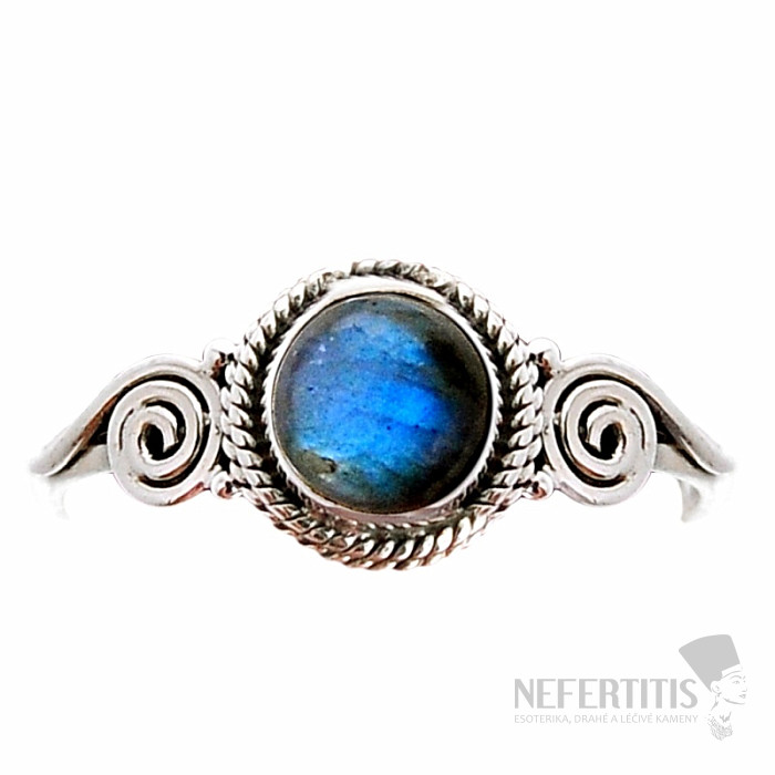 Uchvacujúci a výnimočný strieborný prsteň s prvotriednym lešteným labradoritom s výraznou dúhovou hrou farieb, v ktorom sa pri dopade svetla kúzelne rozžiari jasná modro zlatá farba, zvaný tiež "Multifire". Ag 925. . Nechajte sa očariť krásou a hrou jeho žiarivo modrej farby. Spolu s veľkosťou kameňa cca 0,7 cm , a hrou farieb ide o atraktívny a neprehliadnuteľný šperk. Kupujete priamo vyobrazený šperk.