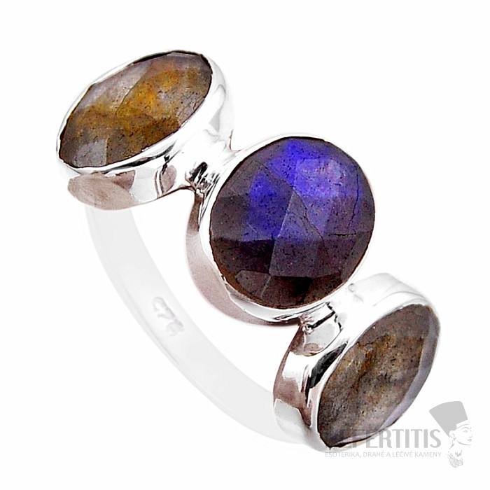 Uchvacujúci a výnimočný strieborný prsteň s prvotriednymi fazetovanými labradoritmi s výraznou dúhovou hrou farieb, v ktorom sa pri dopade svetla kúzelne rozžiari jasná modro zlatá farba, zvaný tiež "Multifire". Ag 925. Veľkosť kameňov 1 - 1,1 cm. Kupujete priamo vyobrazený šperk.