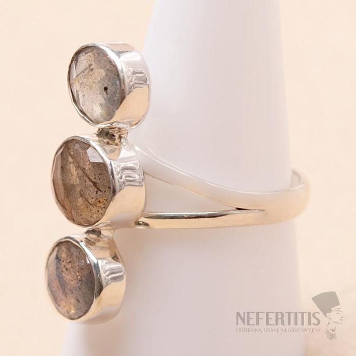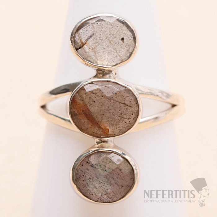 Strieborný prsteň s prvotriednymi broiušenými labradoritmi s dúhovou hrou farieb. Ag 925. Veľkosť časti s kameňmi cca 2,6 cm. Kupujete priamo vyobrazený šperk.