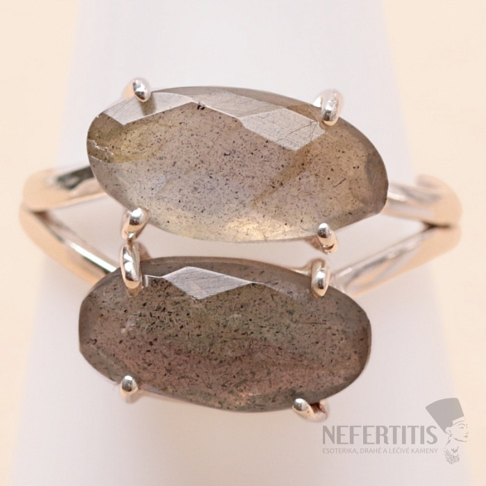 Strieborný prsteň s prvotriednymi broiušenými labradoritmi s dúhovou hrou farieb. Ag 925. Veľkosť časti s kameňmi cca 1,5 cm. Kupujete priamo vyobrazený šperk.