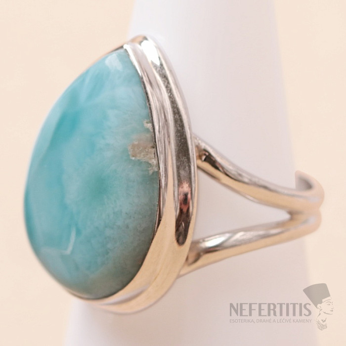 Elegatný prsteň striebro s krásnym a veľmi kvalitným kabošonom larimaru , ktorý pripomína hru slnečných lúčov na hladine mora. Kameň larimaru je starostlivo vybraný so zreteľne modrým vyfarbením a kresbou. Veľkosť larimaru cca 2,1 cm. Ag 925. Kupujete priamo vyobrazený šperk.