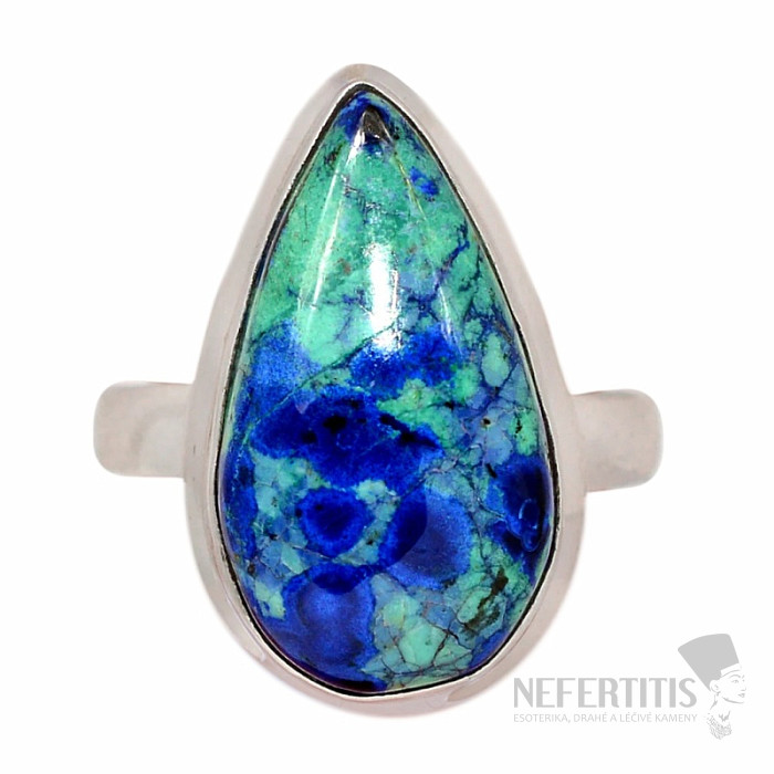 S trojborný prsteň s výrazným malachitom v nádherne temne modrom azurite. Ag 925. Kombinácia malachitu s azuritom pripomínajúca pohľad na planétu Zem z vtáčej perspektívy robí tento šperk nevšedným a veľmi dekoratívnym. Kupujete priamo vyobrazený šperk. Veľkosť kameňa cca 2 cm.
