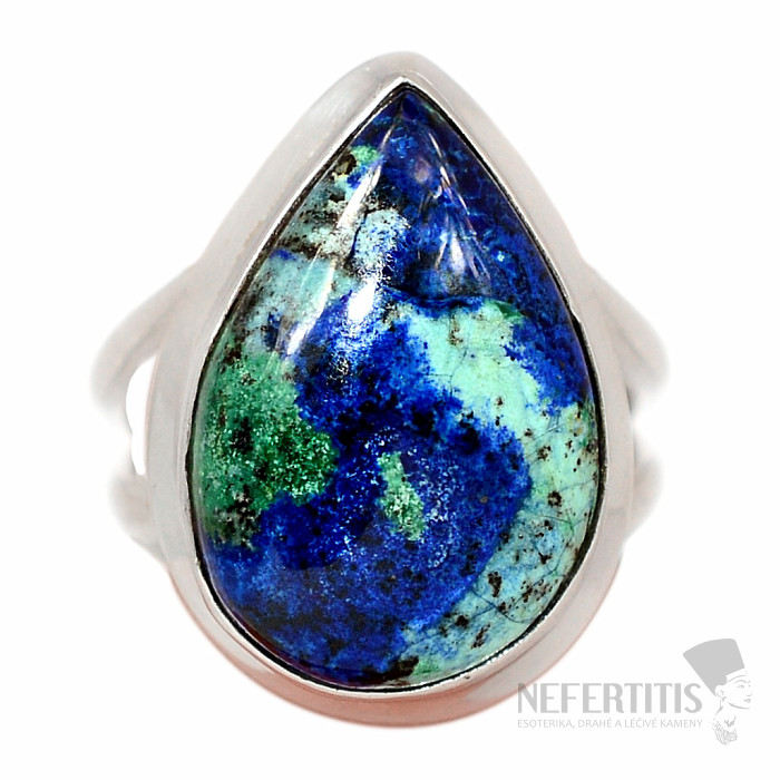 S trojborný prsteň s výrazným malachitom v nádherne temne modrom azurite. Ag 925. Kombinácia malachitu s azuritom pripomínajúca pohľad na planétu Zem z vtáčej perspektívy robí tento šperk nevšedným a veľmi dekoratívnym. Kupujete priamo vyobrazený šperk. Veľkosť kameňa cca 1,8 cm.