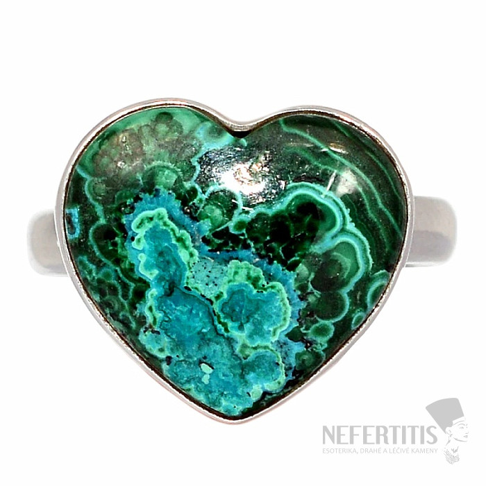 Prekrásny strieborný prsteň s kúzelne vyfarbeným kameňom chryzokola s malachitom vás očarí už na prvý pohľad krásou svojich farieb, kresbou a tvarom kameňa. Unikátny šperk, ktorý nie je v ponuke obchodov príliš častý. Veľmi dekoratívne a atraktívne prsteň. Ag 925. Limitovaná ponuka iba niekoľkých kusov. Kupujete priamo vyobrazený šperk. Veľkosť kameňa cca 1,3 cm .