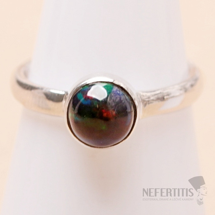 Opál čierny etiópsky prsteň striebro Ag 925 R367