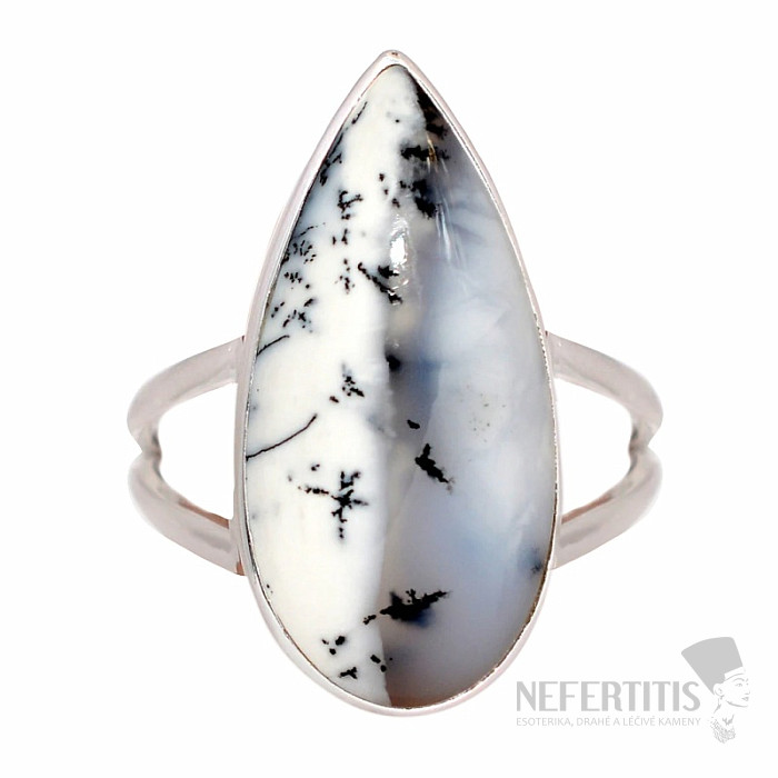 Pôvabný strieborný prsteň s dentritickým opálom , ktorý svojou bielou a šedou farbou a krásnou kresbou inklúzií navodzuje predstavu zasneženej krajiny ako z pera dávnych čínskych kresliarov krajín. Nežný a jemný a napriek tomu výrazný a atraktívny šperk. Mimoriadne pekný kameň, aký máme v ponuke len zriedka kedy. Veľkosť kameňa cca 2,8 cm. Ag 925. Kupujete priamo vyobrazený šperk.