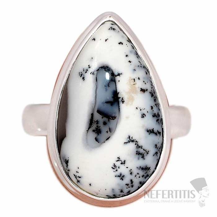 Pôvabný strieborný prsteň s dentritickým opálom , ktorý svojou bielou a šedou farbou a krásnou kresbou inklúzií navodzuje predstavu zasneženej krajiny ako z pera dávnych čínskych kresliarov krajín. Nežný a jemný a napriek tomu výrazný a atraktívny šperk. Mimoriadne pekný kameň, aký máme v ponuke len zriedka kedy. Veľkosť kameňa cca 2 cm. Ag 925. Kupujete priamo vyobrazený šperk.