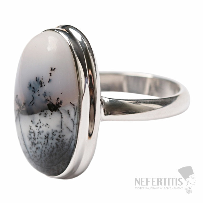 Pôvabný strieborný prsteň s dentritickým opálom , ktorý svojou bielou a šedou farbou a krásnou kresbou inklúzií navodzuje predstavu zasneženej krajiny ako z pera dávnych čínskych kresliarov krajín. Nežný a jemný a napriek tomu výrazný a atraktívny šperk. Mimoriadne pekný kameň, aký máme v ponuke len zriedka kedy. Veľkosť kameňa cca 2 cm. Ag 925. Kupujete priamo vyobrazený šperk.