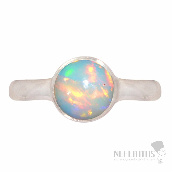 Elegantný strieborný prsteň s kabošonom etiópskeho opálu. Ag 925. Pôsobivý a elegantný šperk, od pohľadu navodzujúci radosť a pocity harmónie. Etiópske opály oproti austrálskym opálom doslova hýria až neónovo žiarivými odleskami farieb. Hoci na prvý pohľad na to nevyzerajú, ohňostroj farieb, ktorý z opálu v tomto prívesku vytryskne pri každom dopade svetla, očarí nielen vás, ale celé vaše okolie. Veľkosť kameňa cca 0,7 cm. Kupujete priamo vyobrazený šperk.