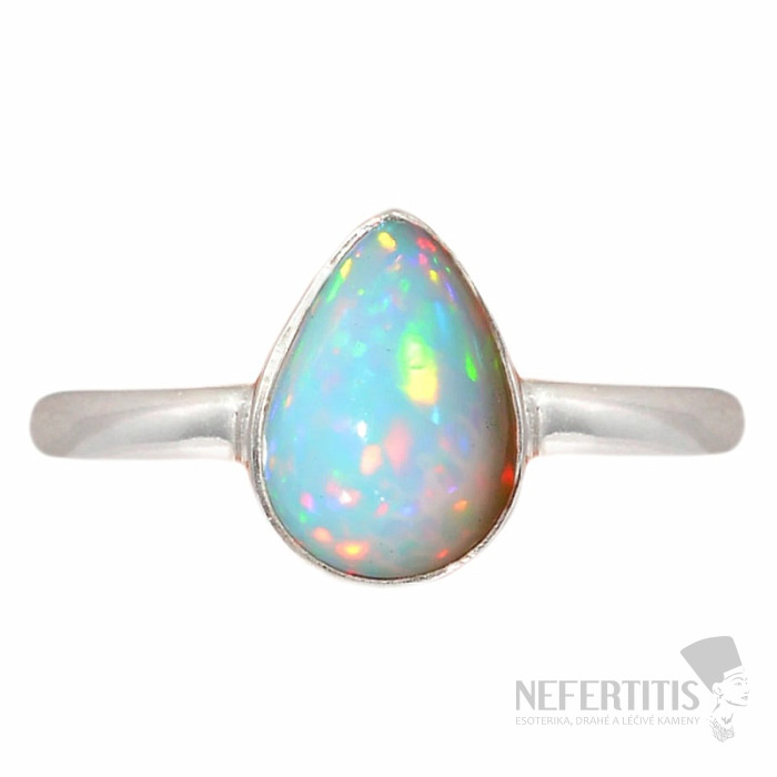 Elegantný strieborný prsteň s kabošonom etiópskeho opálu. Ag 925. Pôsobivý a elegantný šperk, od pohľadu navodzujúci radosť a pocity harmónie. Etiópske opály oproti austrálskym opálom doslova hýria až neónovo žiarivými odleskami farieb. Hoci na prvý pohľad na to nevyzerajú, ohňostroj farieb, ktorý z opálu v tomto prívesku vytryskne pri každom dopade svetla, očarí nielen vás, ale celé vaše okolie. Veľkosť kameňa cca 1 cm. Kupujete priamo vyobrazený šperk.