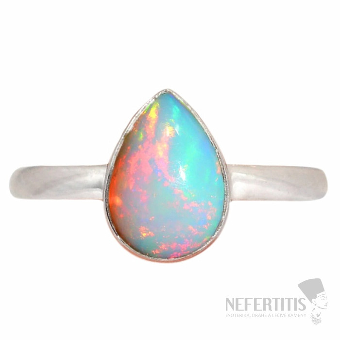 Elegantný strieborný prsteň s kabošonom etiópskeho opálu. Ag 925. Pôsobivý a elegantný šperk, od pohľadu navodzujúci radosť a pocity harmónie. Etiópske opály oproti austrálskym opálom doslova hýria až neónovo žiarivými odleskami farieb. Hoci na prvý pohľad na to nevyzerajú, ohňostroj farieb, ktorý z opálu v tomto prívesku vytryskne pri každom dopade svetla, očarí nielen vás, ale celé vaše okolie. Veľkosť kameňa cca 1 cm. Kupujete priamo vyobrazený šperk.