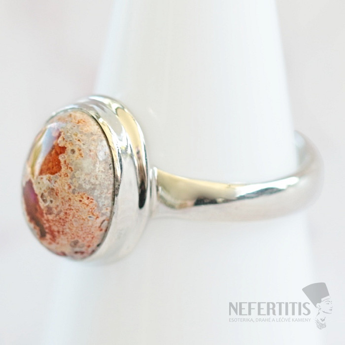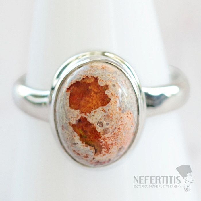 Pôvabný prsteň z mexického ohnivého opálu v striebre Ag 925. Energia mexického ohnivého opálu predstavuje nadšenie a aktivitu. Veľkosť kameňa cca 1,3 cm.
