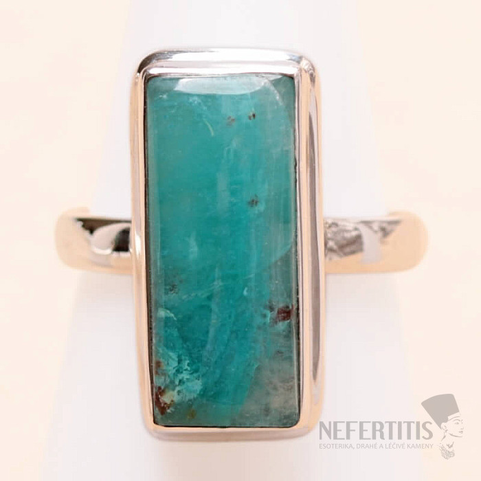 Pôvabný strieborný prsteň so vzácnym a zberateľsky ceneným prírodným Quantum quattro. Ag 925. Quantum quattro je kombináciou štyroch minerálov - shattuckitu, dioptasu, malachitu a chryzokolu. Každý šperk je originálny, neopakovateľný a vďaka farebnej kombinácii a usporiadaniu minerálov podnecuje fantáziu, pripomína pohľad na Zem z vtáčej perspektívy. Budete mať krásny šperk, ktorý nikto neprehliadne, vhodný na rôzne príležitosti. Kupujete priamo vyobrazený šperk. Veľkosť kameňa cca 2,2 cm.