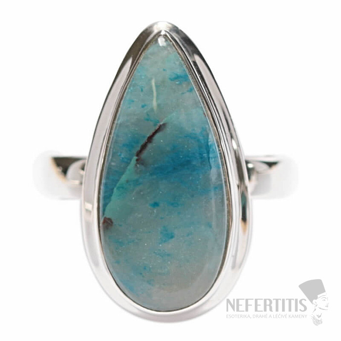 Pôvabný strieborný prsteň so vzácnym a zberateľsky ceneným prírodným Quantum quattro. Ag 925. Quantum quattro je kombináciou štyroch minerálov - shattuckitu, dioptasu, malachitu a chryzokolu. Každý šperk je originálny, neopakovateľný a vďaka farebnej kombinácii a usporiadaniu minerálov podnecuje fantáziu, pripomína pohľad na Zem z vtáčej perspektívy. Budete mať krásny šperk, ktorý nikto neprehliadne, vhodný na rôzne príležitosti. Kupujete priamo vyobrazený šperk. Veľkosť kameňa cca 2,2 cm.