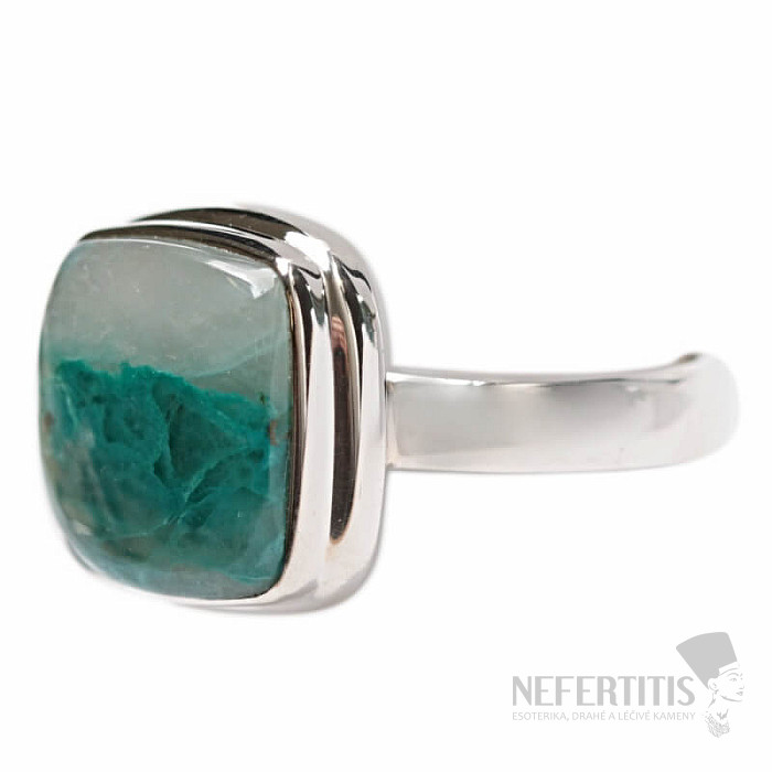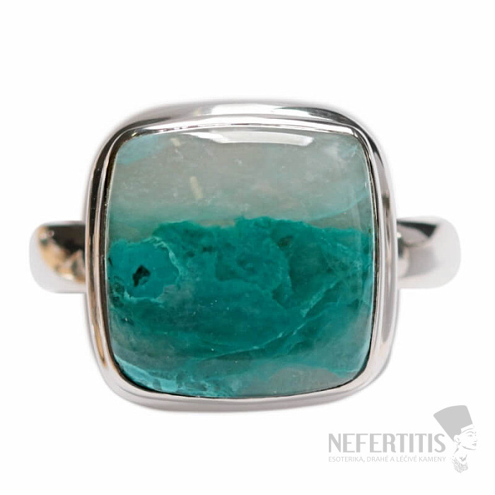 Pôvabný strieborný prsteň so vzácnym a zberateľsky ceneným prírodným Quantum quattro. Ag 925. Quantum quattro je kombináciou štyroch minerálov - shattuckitu, dioptasu, malachitu a chryzokolu. Každý šperk je originálny, neopakovateľný a vďaka farebnej kombinácii a usporiadaniu minerálov podnecuje fantáziu, pripomína pohľad na Zem z vtáčej perspektívy. Budete mať krásny šperk, ktorý nikto neprehliadne, vhodný na rôzne príležitosti. Kupujete priamo vyobrazený šperk. Veľkosť kameňa cca 1,5 cm.