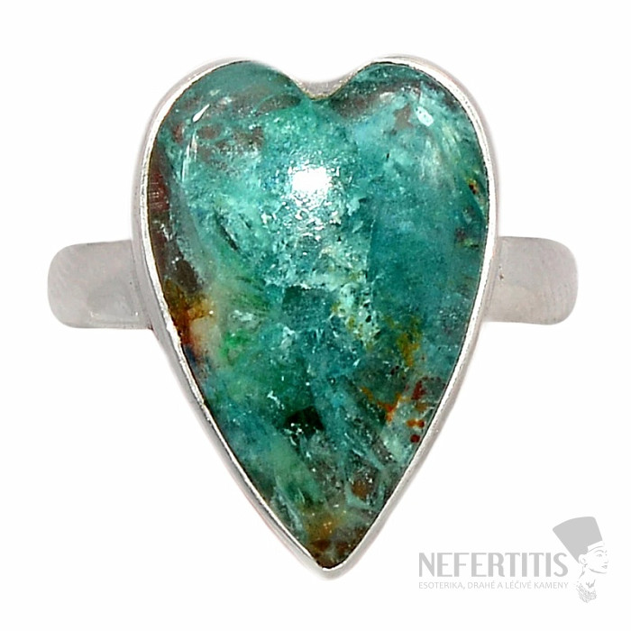 Pôvabný strieborný prsteň so vzácnym a zberateľsky ceneným prírodným Quantum quattro. Ag 925. Quantum quattro je kombináciou štyroch minerálov - shattuckitu, dioptasu, malachitu a chryzokolu. Každý šperk je originálny, neopakovateľný a vďaka farebnej kombinácii a usporiadaniu minerálov podnecuje fantáziu, pripomína pohľad na Zem z vtáčej perspektívy. Budete mať krásny šperk, ktorý nikto neprehliadne, vhodný na rôzne príležitosti. Kupujete priamo vyobrazený šperk. Veľkosť kameňa cca 1,7 cm.