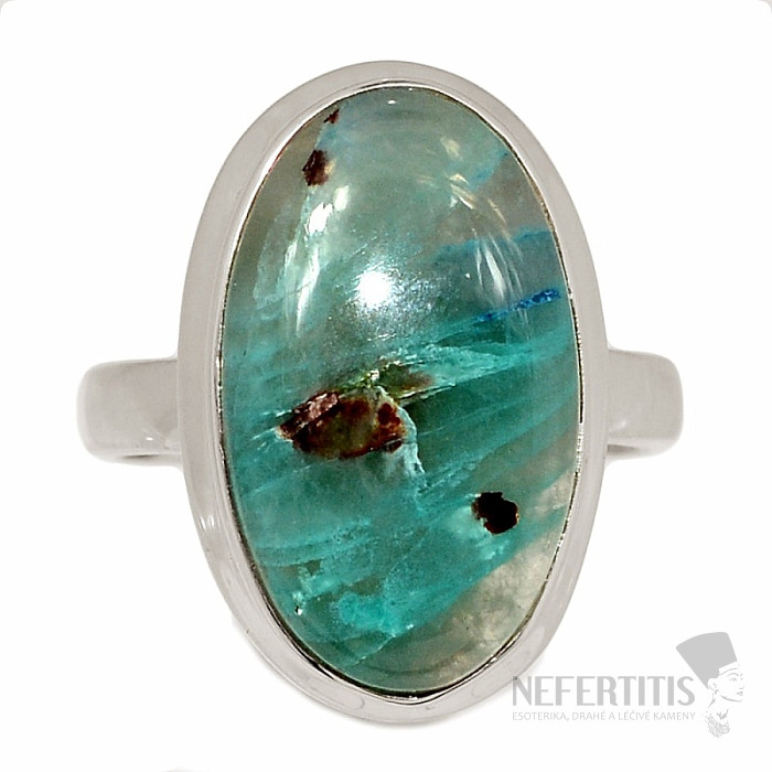 Pôvabný strieborný prsteň so vzácnym a zberateľsky ceneným prírodným Quantum quattro. Ag 925. Quantum quattro je kombináciou štyroch minerálov - shattuckitu, dioptasu, malachitu a chryzokolu. Každý šperk je originálny… viac »