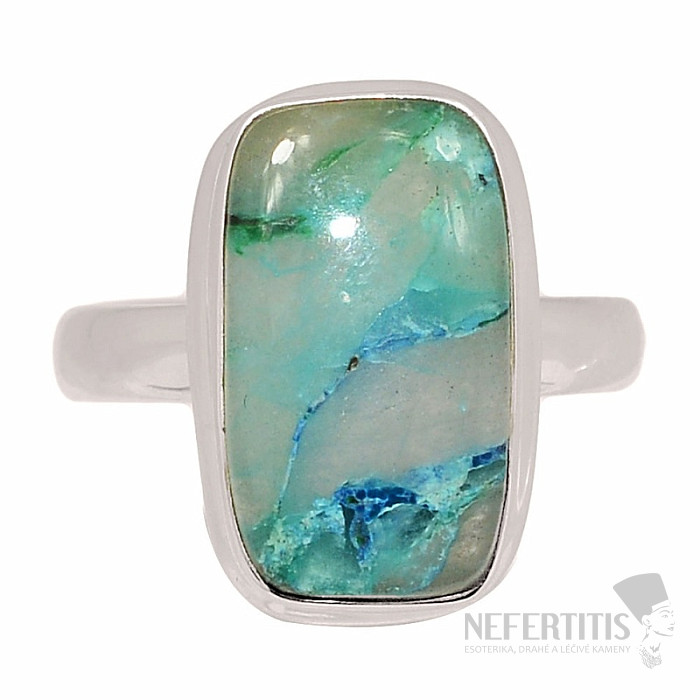 Pôvabný strieborný prsteň so vzácnym a zberateľsky ceneným prírodným Quantum quattro. Ag 925. Quantum quattro je kombináciou štyroch minerálov - shattuckitu, dioptasu, malachitu a chryzokolu. Každý šperk je originálny… viac »