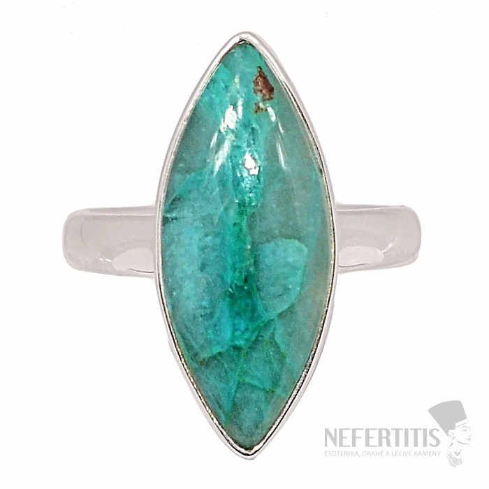 Pôvabný strieborný prsteň so vzácnym a zberateľsky ceneným prírodným Quantum quattro. Ag 925. Quantum quattro je kombináciou štyroch minerálov - shattuckitu, dioptasu, malachitu a chryzokolu. Každý šperk je originálny, neopakovateľný a vďaka farebnej kombinácii a usporiadaniu minerálov podnecuje fantáziu, pripomína pohľad na Zem z vtáčej perspektívy. Budete mať krásny šperk, ktorý nikto neprehliadne, vhodný na rôzne príležitosti. Kupujete priamo vyobrazený šperk. Veľkosť kameňa cca 2,1 cm.