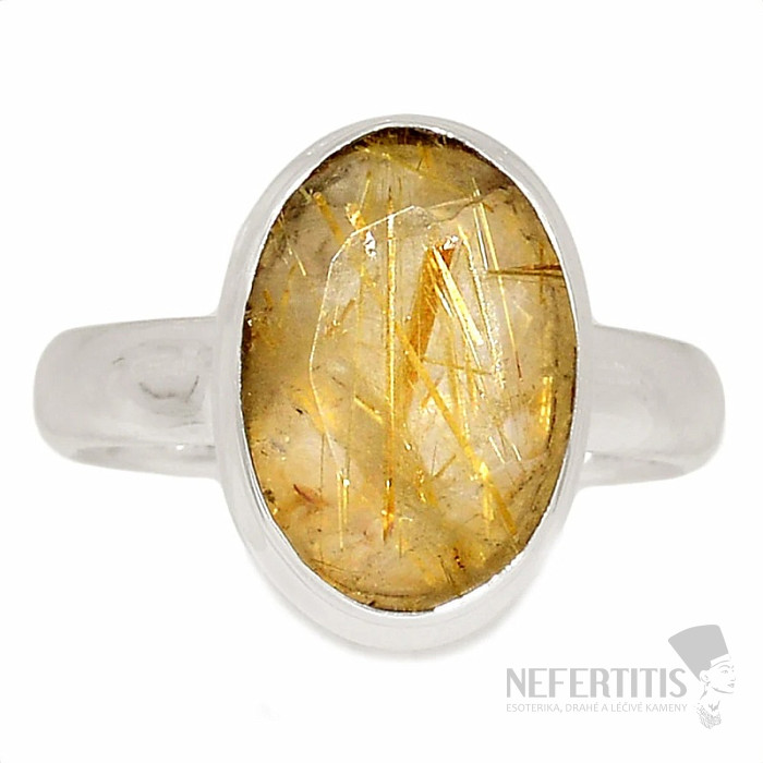 Sagenit krištáľ s rutilom brúsený prsteň striebro Ag 925 R310
