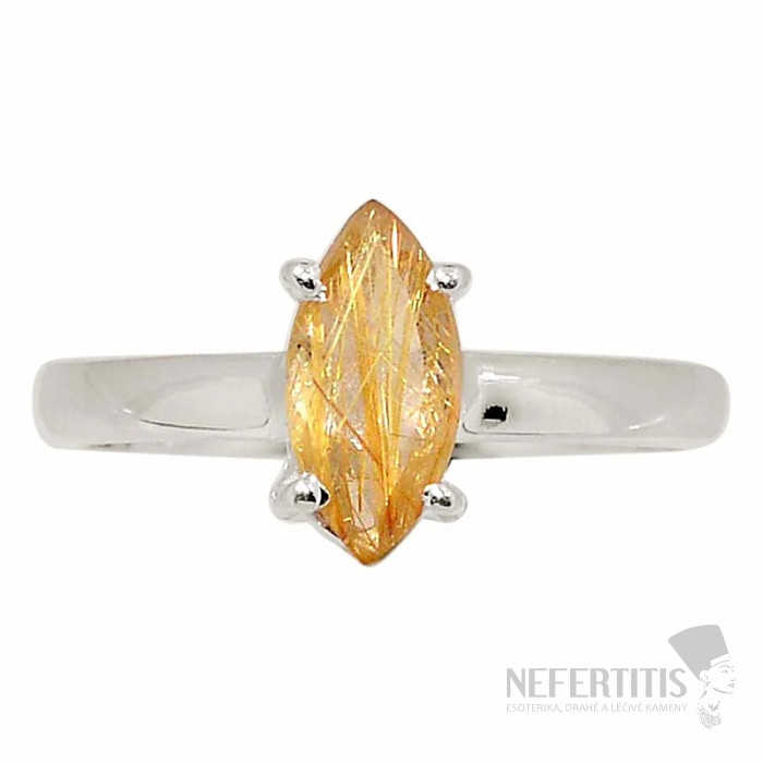 Unikátny prsteň s brúseným sagenitom doslova žiari zlatistými inklúziami "zlatého" rutilu ako slniečko na letnej oblohe. Veľmi optimistický a dobrú náladu už od pohľadu dávajúci šperk. Sagenit - zlatý rútil sa často označuje tiež ako "Vlasy anjelov". Ag 925. Kupujete priamo vyobrazený šperk. Veľkosť kameňa cca 1 cm.