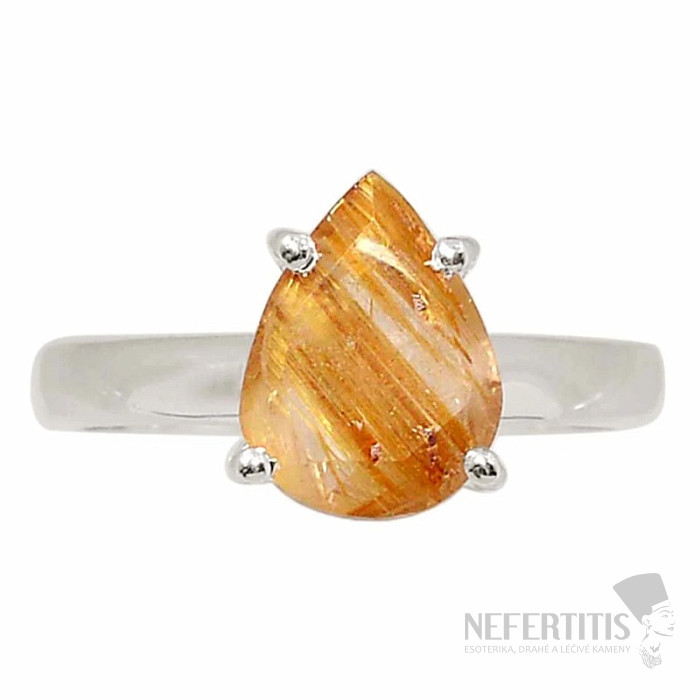 Unikátny prsteň s brúseným sagenitom doslova žiari zlatistými inklúziami "zlatého" rutilu ako slniečko na letnej oblohe. Veľmi optimistický a dobrú náladu už od pohľadu dávajúci šperk. Sagenit - zlatý rútil sa často označuje tiež ako "Vlasy anjelov". Ag 925. Kupujete priamo vyobrazený šperk. Veľkosť kameňa cca 1 cm.