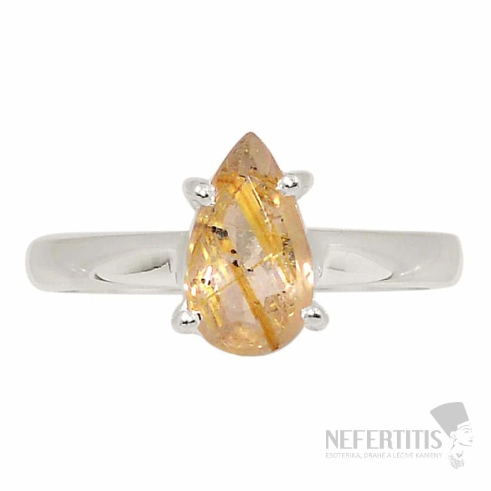 Sagenit krištáľ s rutilom brúsený prsteň striebro Ag 925 R362