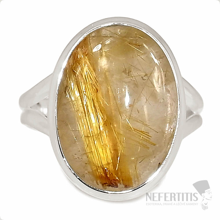 Unikátny prsteň so sagenitom doslova žiari zlatistými inklúziami "zlatého" rutilu ako slniečko na letnej oblohe. Veľmi optimistický a dobrú náladu už od pohľadu dávajúci šperk. Sagenit - zlatý rútil sa často označuje tiež ako "Vlasy anjelov". Práve kamene s týmto usporiadaním vlákien sagenitu sú na trhu veľmi cenené. Ag 925. Kupujete priamo vyobrazený šperk. Veľkosť kameňa cca 1,7 cm.