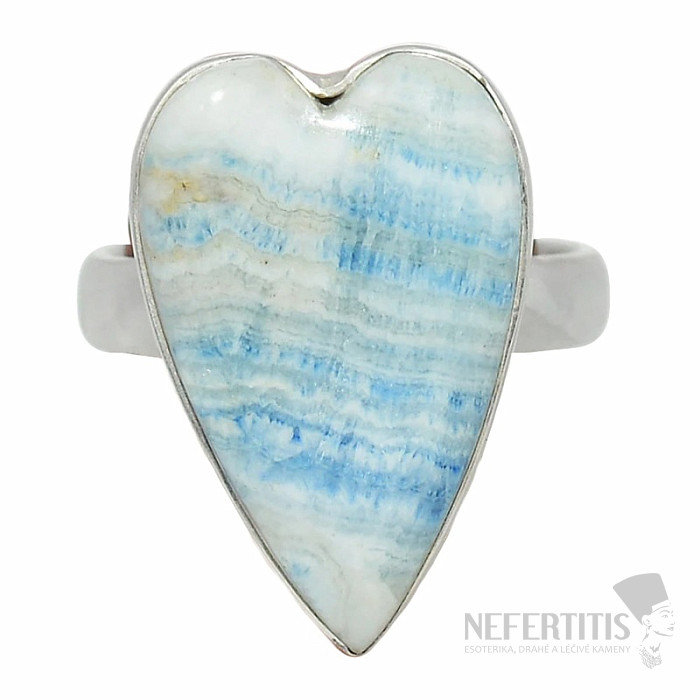 Unikátny strieborný prsteň so vzácnym modrým scheelitom. Ag 925. Scheelit je kameň, ktorý sa používa ako talizman na riešenie problémov a celkové zlepšenie života. Kupujete priamo vyobrazený šperk. Veľkosť kameňa cca 1,9 cm.